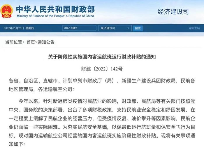 | 兩部門(mén):階段性實(shí)施國(guó)內(nèi)客運(yùn)航班運(yùn)行財(cái)政補(bǔ)貼 |