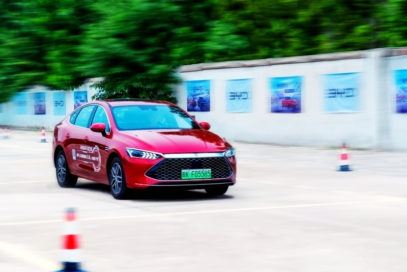 試駕當(dāng)天車外溫度達(dá)到38攝氏度的高溫,但是由于通過4S店人員通過手機APP預(yù)約,提前打開了空調(diào),車內(nèi)的溫度非常適宜。而秦PLUS DM-i擁有4打行駛模式,即:EV純電模式、HEV串聯(lián)模式、HEV并聯(lián)模式和高速發(fā)動機直驅(qū)模式。在選擇EV純電模式下,車內(nèi)非常安靜,給人獨有的私密空間。踩下油門,那種安靜、順滑、流暢的駕駛感受絕對是內(nèi)燃機無法實現(xiàn)的。在蛇形繞樁時,記者嘗試油門踩到底、激烈轉(zhuǎn)向、猛踩剎車,結(jié)果整車均以矯健姿態(tài)動感犀利地繞過每個彎角。