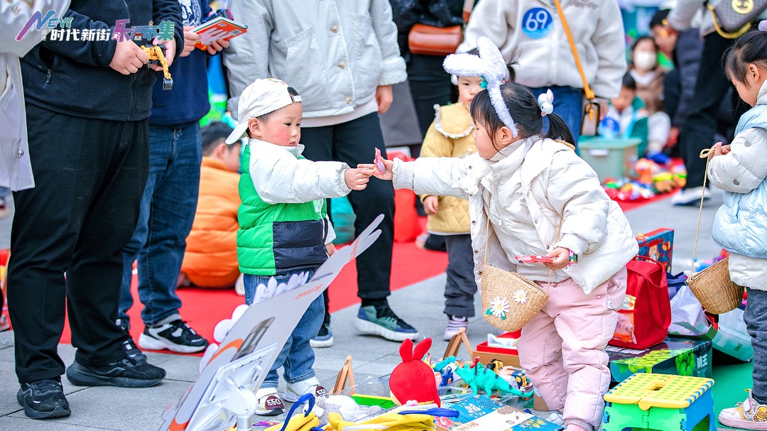 “便宜了、便宜了,過來看一看吧”,“這個奧特曼我沒玩過,10元給你”,可別小看這些娃娃“掌柜”,每個人都賣力吆喝,吸引小朋友到自己的攤位前,忙得不可開交。 小小“淘客”們則挑來選去,討價還價,穿梭在人群中尋找自己心愛的寶貝。