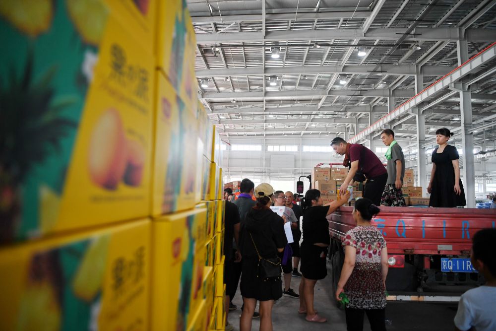 在河北省涿州市鋼研物資儲(chǔ)備點(diǎn)外,運(yùn)送物資的車輛排起長(zhǎng)隊(duì)(8月5日攝,無人機(jī)照片)。新華社記者 牟宇 攝 一瓶瓶礦泉水、一袋袋面包送到群眾手里……在廊坊市文安縣蘇橋鎮(zhèn)中學(xué)安置點(diǎn),受災(zāi)群眾正在領(lǐng)救援物資。 “一日三餐都有兩菜一湯和主食,在飯后還提供蘋果、香蕉、西瓜等水果。”苑口村村民楊小苓說,在安置點(diǎn)比較安心,最重要的是家人平安。
