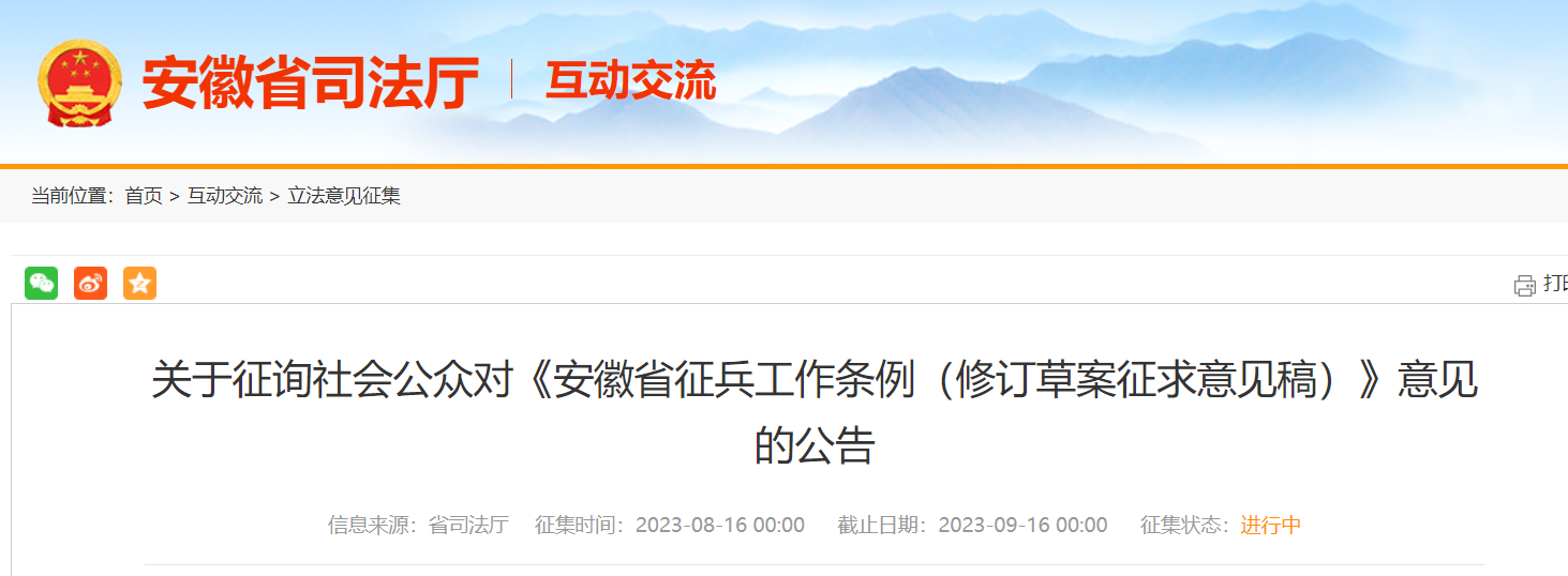 大皖新聞訊 8月16日,安徽司法廳網公布《安徽省征兵工作條例(修訂草案征求意見稿)》全文,公開征求社會公眾意見。其中提出,應征公民拒絕、逃避征集服現(xiàn)役的,拒不改正的,不得錄用為公務員或者參照《中華人民共和國公務員法》管理的工作人員,不得招錄、聘用為國有企業(yè)和事業(yè)單位工作人員,兩年內不準出境或者升學復學,納入履行國防義務嚴重失信主體名單,依法依規(guī)實施聯(lián)合懲戒。