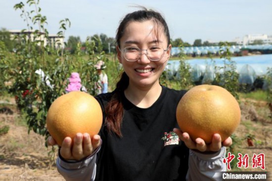 9月2日,潘雅潔展示剛采摘的梨子?!£惣覙?lè) 攝 今年26歲的潘雅潔在海外求學(xué)多年,2022年碩士畢業(yè)后,回到家鄉(xiāng)安徽省肥西縣,致力打造“農(nóng)、旅、居”三位一體的鄉(xiāng)村田園綜合體?!俺踔挟厴I(yè)后就一直在國(guó)外求學(xué),沒(méi)有陪在父母身邊,現(xiàn)在碩士畢業(yè)了,想著一家人要在一起,回來(lái)替父母分擔(dān)一點(diǎn)壓力,也希望通過(guò)自己所見(jiàn)所學(xué),為家鄉(xiāng)發(fā)展貢獻(xiàn)一份綿薄之力?!?/span> 潘雅潔打造的鄉(xiāng)村田園綜合體位于肥西縣紫蓬鎮(zhèn),總占地面積約400畝,業(yè)態(tài)規(guī)劃有農(nóng)業(yè)種植、牲畜養(yǎng)殖、觀光旅游、休閑垂釣、酒店民宿、研學(xué)基地等子項(xiàng)目,冀實(shí)現(xiàn)農(nóng)業(yè)、旅游業(yè)、服務(wù)業(yè)的有機(jī)結(jié)合。