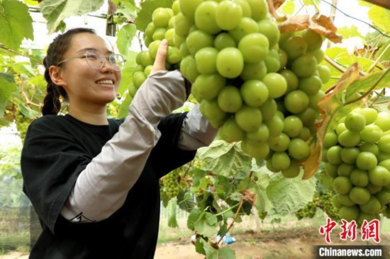 中新社合肥9月3日電 題:“海歸”女孩逐夢(mèng)安徽鄉(xiāng)村 打造田園綜合體 作者 張強(qiáng) 陳家樂(lè) 采摘葡萄、接待游客、直播帶貨……9月2日,“95后”女孩潘雅潔在自己一手打造的鄉(xiāng)村田園綜合體里忙碌著,滿頭大汗。