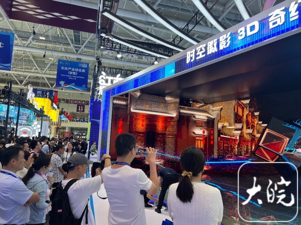 大皖新聞?dòng)浾呖吹?,該空間以安徽的凌家灘文化為切入點(diǎn),將凌家灘出土的文物塑造為活潑可愛的小玉龍IP形象,在小玉龍的帶領(lǐng)下,與觀眾一同穿越古今和未來,感受徽州文化的一脈相承、創(chuàng)新發(fā)展,為觀眾呈現(xiàn)一個(gè)多維度、立體的安徽文化展示空間,實(shí)現(xiàn)科技力量賦能文化發(fā)展的具象化表達(dá)。 不遠(yuǎn)處,一處全息倉也吸引眾多觀眾“打卡”?!巴郏梢該Q不同的臉,你看這個(gè)臉好可愛。”在來自合肥的企業(yè)達(dá)樸匯聯(lián)帶來的元宇宙互動(dòng)全息倉前,很多觀眾“玩”得不亦樂乎。 “這是一款裸眼3D智能終端顯示設(shè)備,運(yùn)用人工智能、全息成像、光學(xué)捕捉等技術(shù),讓人物形象或文化藝術(shù)品以全息形式展現(xiàn)。”現(xiàn)場(chǎng)工作人員告訴大皖新聞?dòng)浾?,目前,達(dá)樸匯聯(lián)正在將數(shù)字人的形象和大模型進(jìn)行結(jié)合,實(shí)現(xiàn)更多的交互功能。用戶可以和全息艙中的數(shù)字人實(shí)時(shí)對(duì)話問答,在元宇宙的世界中打造數(shù)字導(dǎo)游、科普講師、文藝表演者、工作助手、心靈陪伴導(dǎo)師等眾多角色。 以“古今輝映 科創(chuàng)未來”為主題 深圳文博會(huì)走過二十載,也見證了“文化皖軍”的成長(zhǎng)。 本屆深圳文博會(huì)安徽館展區(qū)面積為1287平方米,以“古今輝映 科創(chuàng)未來”為主題,展示安徽深入實(shí)施創(chuàng)新驅(qū)動(dòng)發(fā)展戰(zhàn)略,推動(dòng)傳統(tǒng)文化傳承創(chuàng)新,大力發(fā)展新質(zhì)生產(chǎn)力,賦能文化產(chǎn)業(yè)高質(zhì)量發(fā)展的最新成果。 安徽館分為主題展項(xiàng)、融合發(fā)展成果區(qū)和“潮皖薈集”三個(gè)區(qū)域。主題展區(qū)以凌家灘文化為切入點(diǎn),挖掘從古至今安徽文化與科技、旅游、建筑等領(lǐng)域融合發(fā)展的標(biāo)志性內(nèi)容,采用數(shù)字化技術(shù)展示安徽文化的一脈傳承與創(chuàng)新。