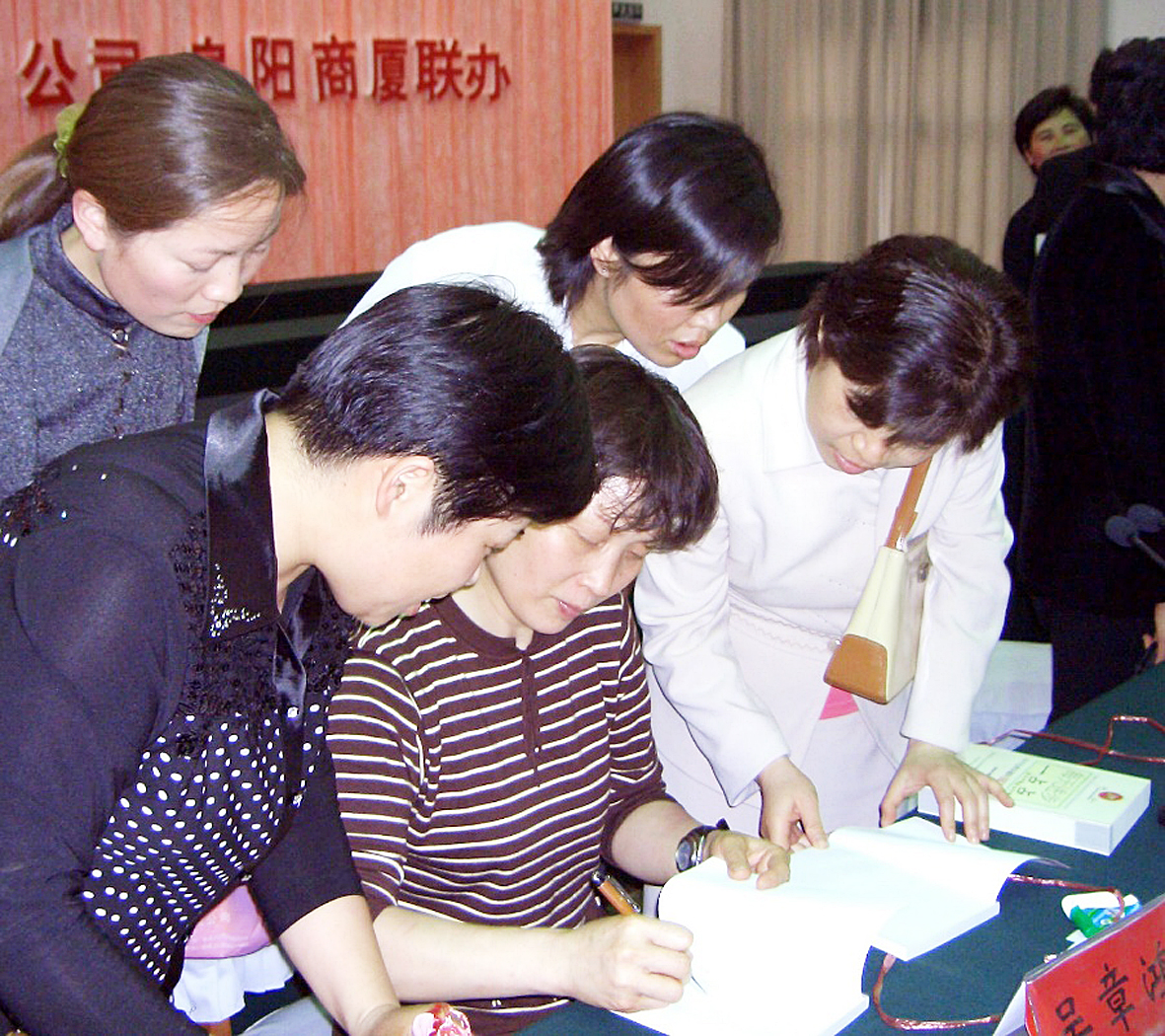 當(dāng)年的報(bào)告會(huì)現(xiàn)場(chǎng) 小滿時(shí)節(jié),麥浪金黃。我走進(jìn)阜陽(yáng)商廈董事長(zhǎng)張志鋒的辦公室,張總說(shuō):“人生如夢(mèng)啊!阜陽(yáng)商廈人20多年前請(qǐng)你來(lái)作《發(fā)現(xiàn)母親》家庭教育報(bào)告會(huì)。如今,已有366名職工的孩子考上大學(xué),其中37名考取研究生,18名上了中國(guó)前10的名?!簧偃艘呀?jīng)走上工作崗位,成為工程師、教授。”談話后,我抽出時(shí)間,探訪了阜陽(yáng)商廈的追夢(mèng)人!