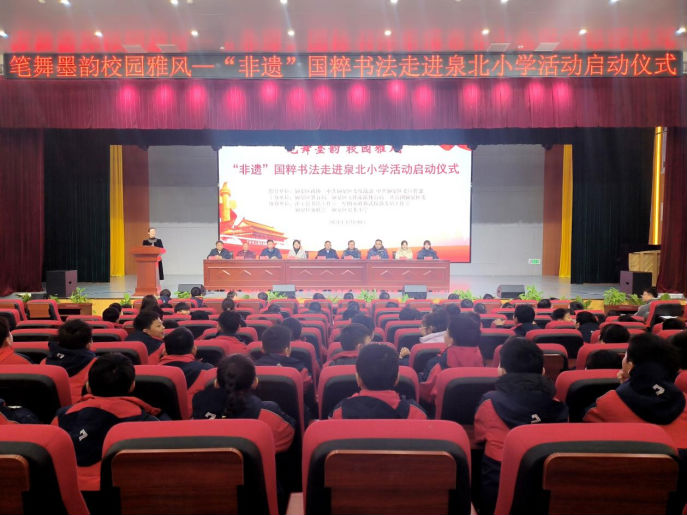 2024年12月20日上午9時,阜陽市泉北小學行知報告廳和非遺教室內,一場別開生面的文化盛宴——“非遺”國粹書法走進泉北小學活動啟動儀式圓滿舉行。此次活動旨在積極響應關于建設文化強國的號召,增進學生對“非遺”文化的認知,豐富校園文化內涵。