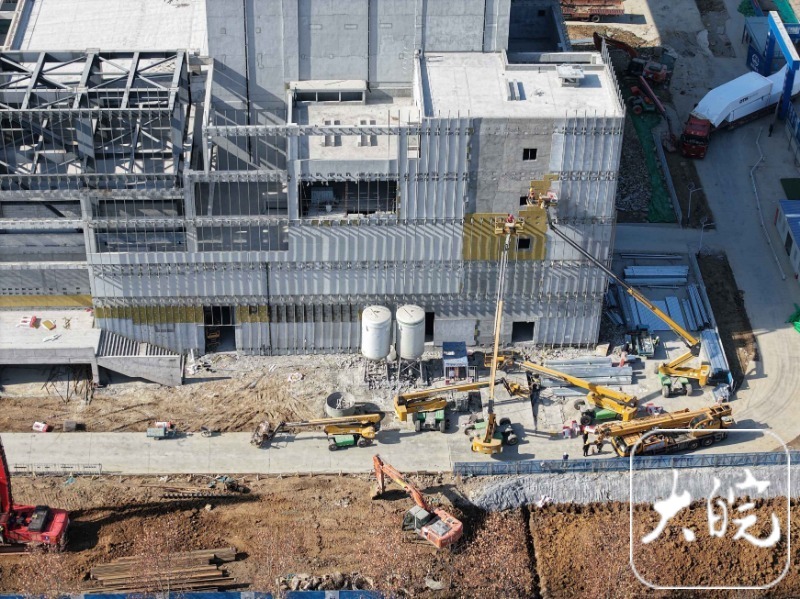 2025年1月9日,大皖新聞?dòng)浾吆脚捻?xiàng)目施工現(xiàn)場(chǎng)。 “兩館”項(xiàng)目位于合肥市包河區(qū)紫云路與江蘇路交口西北角,總建筑面積32400平方米,其中地上建筑面積23402平方米,地下建筑面積8998平方米。 該項(xiàng)目由安徽省公益性項(xiàng)目建設(shè)管理中心負(fù)責(zé)代建,中鐵四局承建,建成后交由安徽省文化館、安徽省非物質(zhì)文化遺產(chǎn)保護(hù)中心管理使用。 作為安徽文化“新地標(biāo)”,該項(xiàng)目旨在打造整合安徽文化性、地域性、功能性于一身的“文化城”地標(biāo)形象。 1月9日上午,大皖新聞?dòng)浾邅淼皆擁?xiàng)目施工現(xiàn)場(chǎng)附近。工地外的展示牌張貼著關(guān)于安徽省文化館新館和非物質(zhì)文化遺產(chǎn)展示館項(xiàng)目的情況介紹。通過無人機(jī)航拍俯瞰,項(xiàng)目主體結(jié)構(gòu)已經(jīng)建成。工地內(nèi)的登高車上,有工人正在進(jìn)行外墻施工作業(yè)。