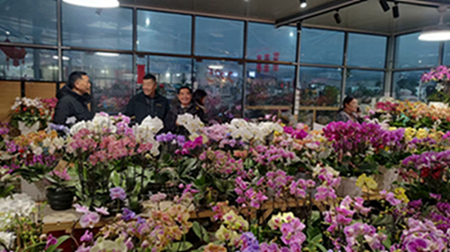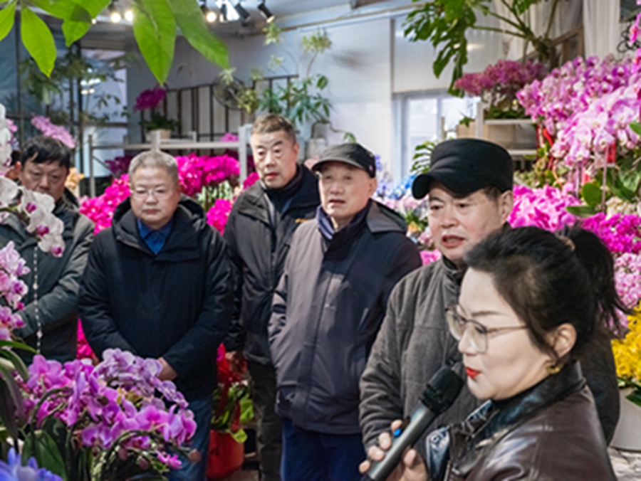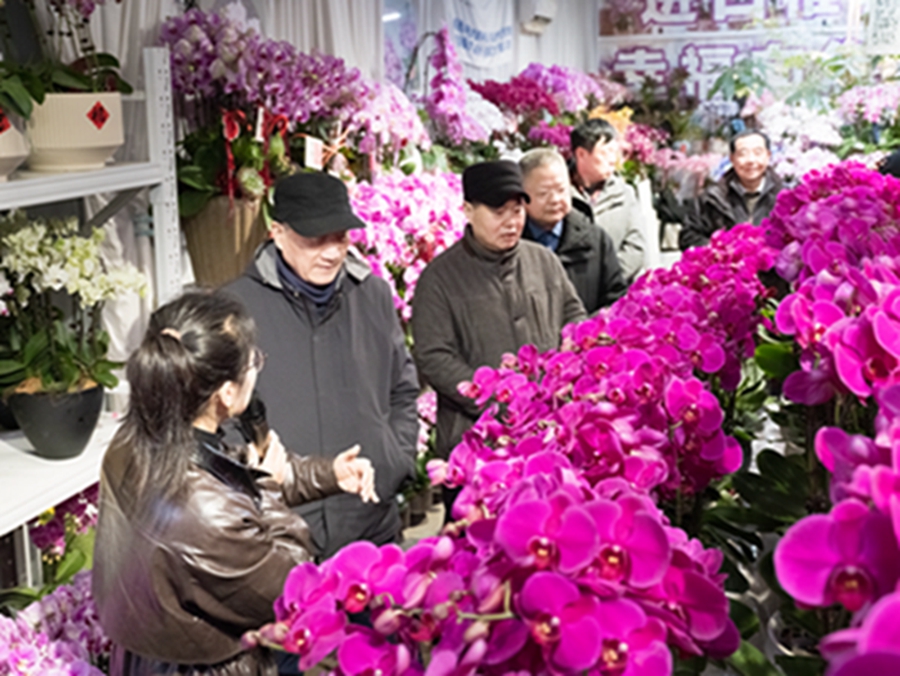 在吳淑賢的帶領(lǐng)下,張世友等一行一起參觀了陽光花卉市場各分會(huì)場,攤位花展艷麗芬芳,爭色斗艷,喜迎新春。