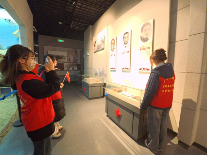 為深入貫徹落實(shí)習(xí)近平總書記關(guān)于青年工作的重要思想,踐行綻放鄉(xiāng)村振興青春風(fēng)采的實(shí)踐要求,2月17日至2月23日,阜陽師范大學(xué)阜曜青鋒青年志愿服務(wù)團(tuán)走進(jìn)阜陽市革命烈士紀(jì)念館、潁泉區(qū)寧老莊鎮(zhèn)以及利辛縣鞏店鎮(zhèn)等地,通過實(shí)地調(diào)研、志愿服務(wù)、互動(dòng)體驗(yàn)等形式,深切感受了紅色文化的深厚底蘊(yùn),用實(shí)際行動(dòng)傳承紅色基因,展現(xiàn)青春風(fēng)采。 本次活動(dòng)精心設(shè)計(jì)了紅色教育、直播助農(nóng)、文創(chuàng)實(shí)踐、志愿服務(wù)等多個(gè)特色板塊?;顒?dòng)期間,志愿服務(wù)團(tuán)志愿團(tuán)隊(duì)開展了形式多樣、內(nèi)容豐富的主題實(shí)踐活動(dòng),以實(shí)際行動(dòng)踐行青春使命,彰顯新時(shí)代青年的責(zé)任與擔(dān)當(dāng)。 在紅色教育環(huán)節(jié),志愿者們通過聆聽革命先烈的英勇事跡,深入挖掘紅色文化底蘊(yùn),系統(tǒng)了解紅色文化在當(dāng)?shù)厣鐣?huì)生活中的傳承與發(fā)展。與此同時(shí),該團(tuán)隊(duì)通過文獻(xiàn)整理、觀賞抗戰(zhàn)物件、紅色故事視頻拍攝等方式,系統(tǒng)性挖掘阜陽英烈事跡。在英烈們崇高精神的指引下,該團(tuán)隊(duì)設(shè)計(jì)了一系列紅色文創(chuàng)產(chǎn)品,通過現(xiàn)代藝術(shù)與紅色文化結(jié)合,讓革命歷史“活”起來,以校園售賣、線下推廣的方式吸引了更多年輕人主動(dòng)了解紅色文化。